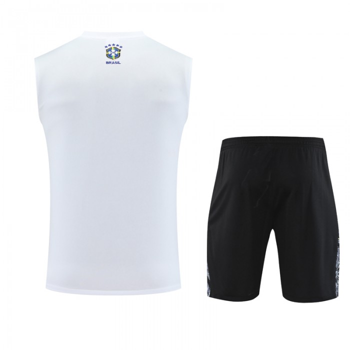 2025 Brazil White Gray Training jersey Kit Sleeveless Vest (Vest + Short)