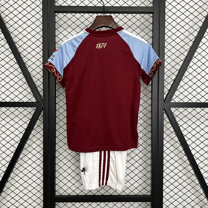 1 X 25/26 Kids Aston Villa Home Wine Red Kids Jersey Kit Short Sleeve (Shirt + Short) |